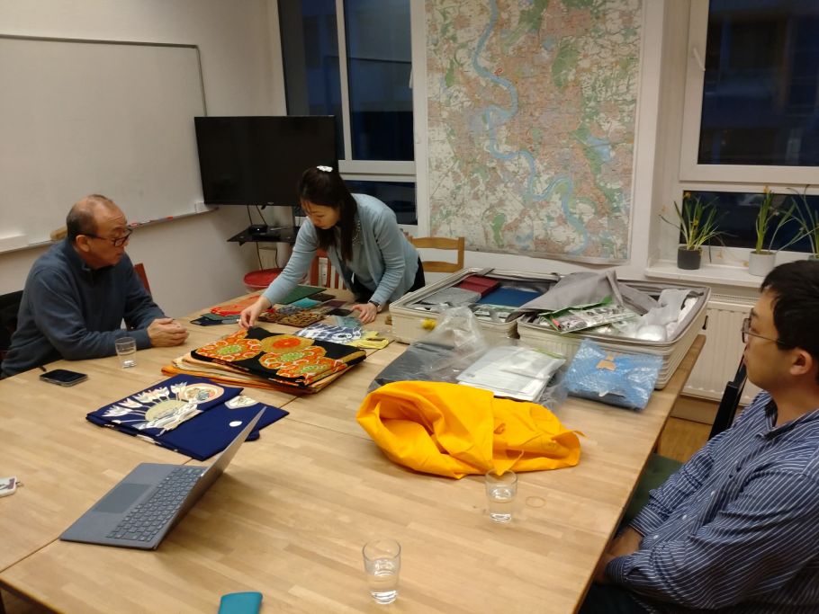 ZESDAとともにGlocal Collaboration プロジェクトを手がける8PEACEの市川氏・八木氏が、文化の架け橋プロジェクトの活動でドイツ・デュッセルドルフおよびルクセンブルクを訪問し、京友禅を用いたガラス皿や箸袋などの日本の伝統工芸作品のセールス活動や文化交流を行いました。ZESDAからはデュッセルドルフ支局長の本田が現地でのアテンドを務め、一連のセールス活動およびイベントをサポートしました。